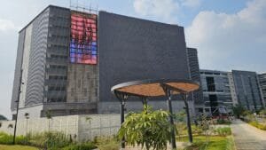 We are pleased to announce the successful handover of the Lakeshore P10 Outdoor LED Display Project for Prestige Beta Projects Pvt. Ltd., located at Ammanikere, Bellandur, Bengaluru. Qlite Ltd has completed the supply, installation, testing, and commissioning of two large-format P10 outdoor front-maintenance LED screens (7680 × 17280 mm each) at the main entrance, ensuring full compliance with project specifications and quality standards